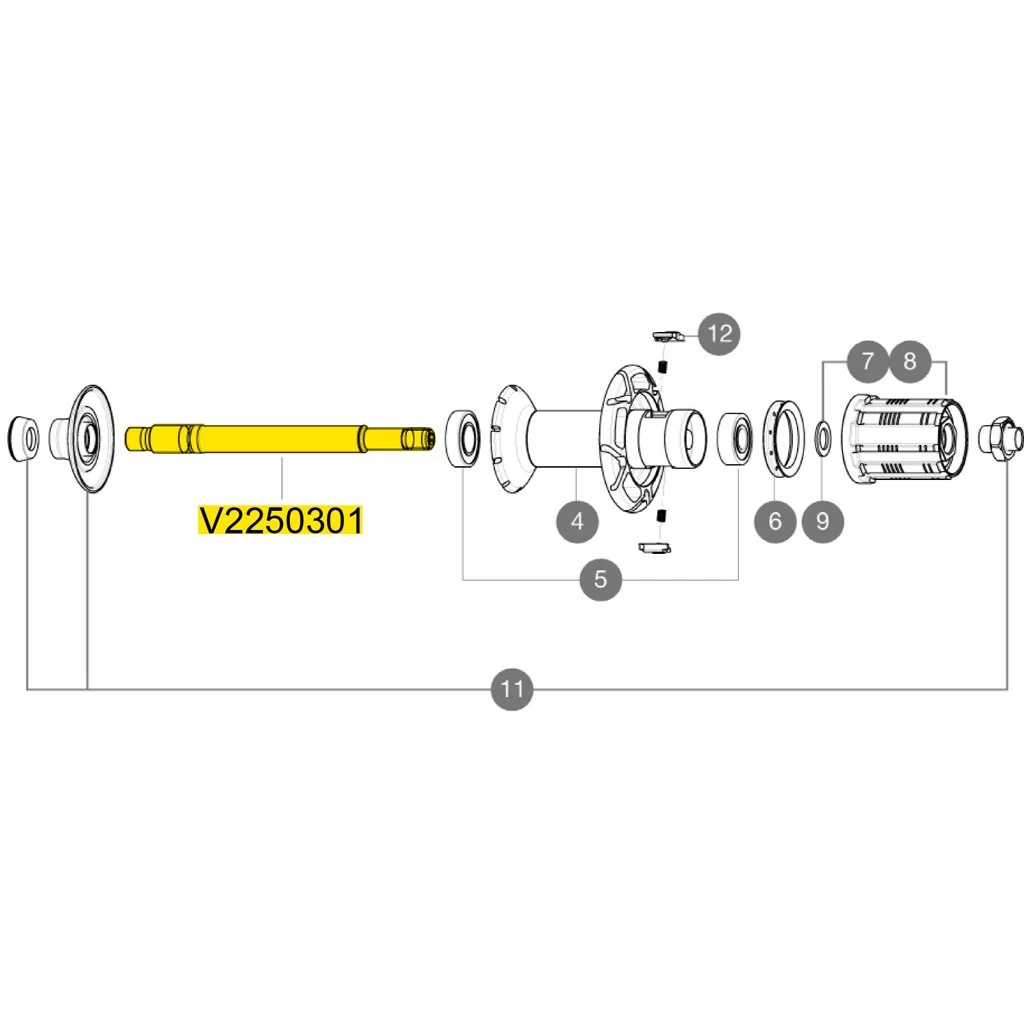 Mavic rear wheel axle for Cosmic Carbone 40 – 2015/CXR Ultimate 60/Cosmic Pro Carbon Exalith from modelyear 2016 – V2250301.
